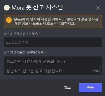 Mora 봇 명령어 가이드 입니다.